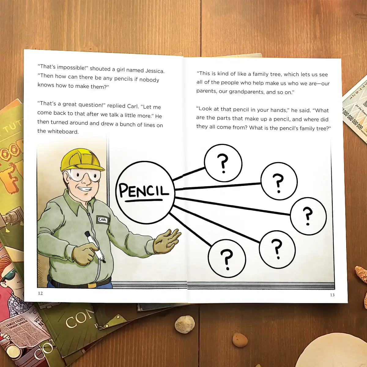 In this second book of the Tuttle Twins series, Mrs. Miner leads the twins and their classmates on a fun field trip to learn how pencils are made using parts from all over the world—and how in an economy, people from all over the world work together in harmony to produce helpful products that improve our lives.