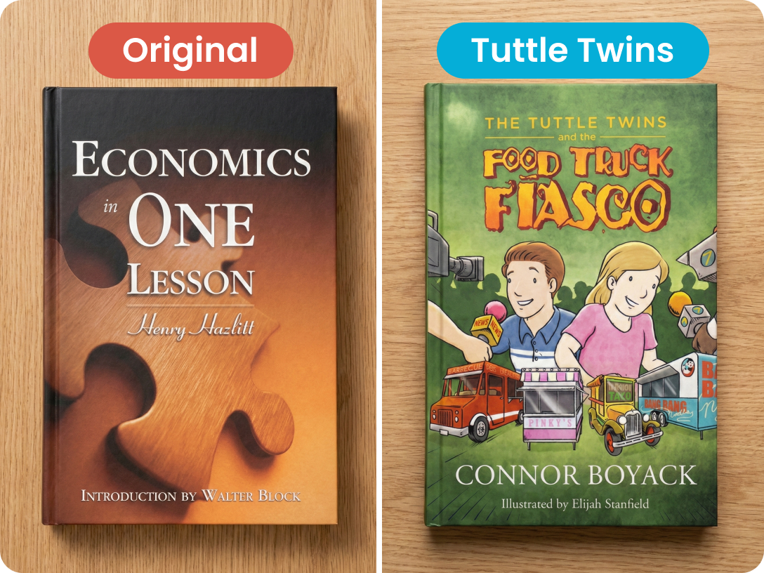 Unlike most textbooks, the Tuttle Twins use storytelling to make learning effortless and memorable. Research shows kids recall and understand more when lessons are woven into an engaging story rather than presented as dry facts.